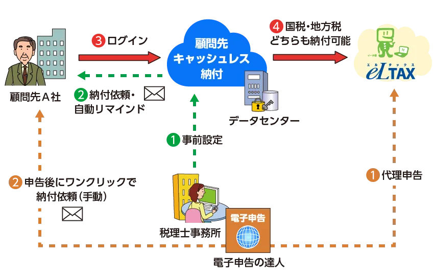 安心して顧問先に納付を任せられるように、税理士の業務をシステムで支えます。