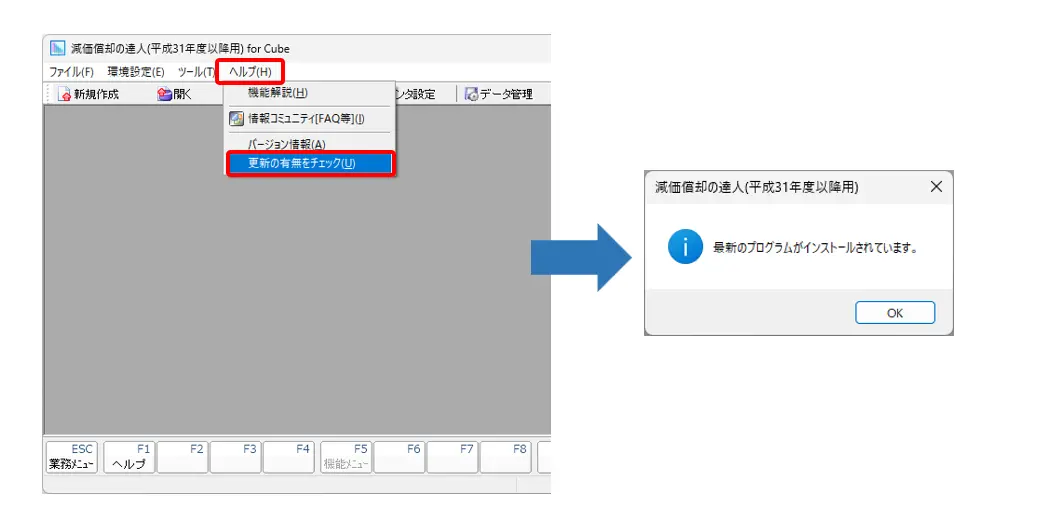 ※[達人シリーズ]メニューバー-[ヘルプ]-[更新の有無をチェック]から確認できます。