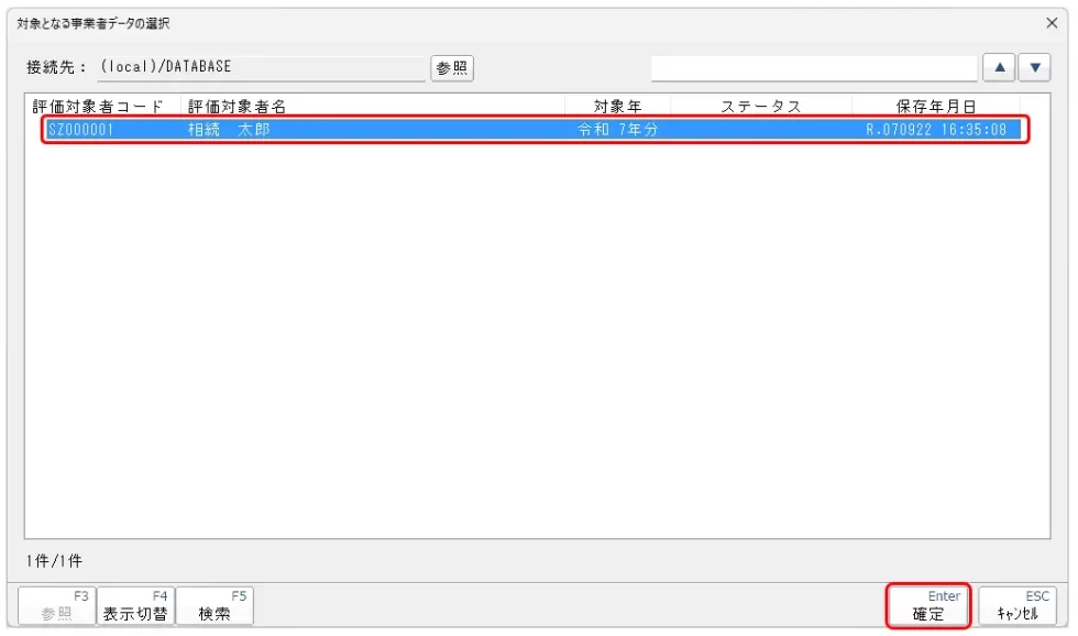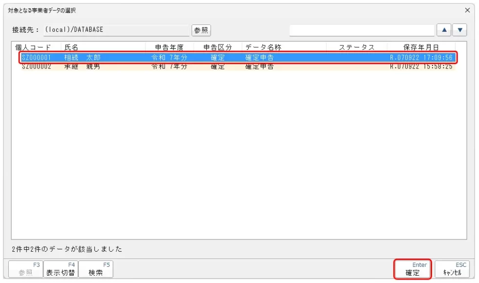 5.対象となる事業者データをクリックし、[確定]をクリックします。