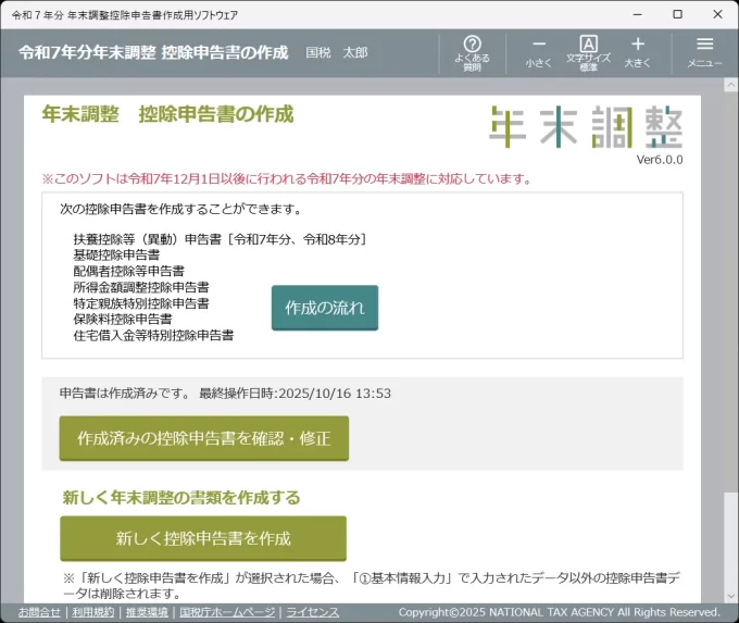 ❓年末調整控除申告書作成用ソフトウェア(年調アプリ)についてはこちら(国税庁ホームページ)