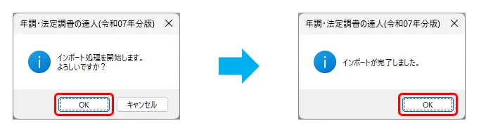 6.最後に「インポートが完了しました。」と表示されましたら、年調ソフトデータの取込は完了です。帳票を開いてご確認ください。