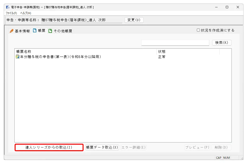 💡取り込みを行う贈与税のデータが1件のみか複数かで財産評価の達人からのデータ取込手順が異なります。