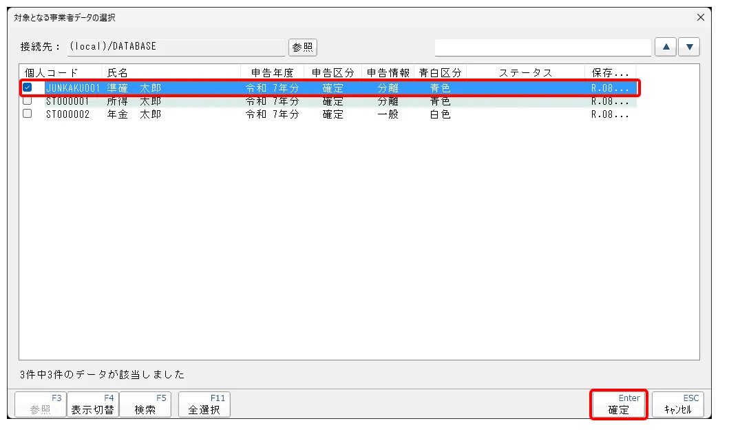 6.令和07年分のデータを選択する場合は[F5/検索]ボタンをクリックします。
