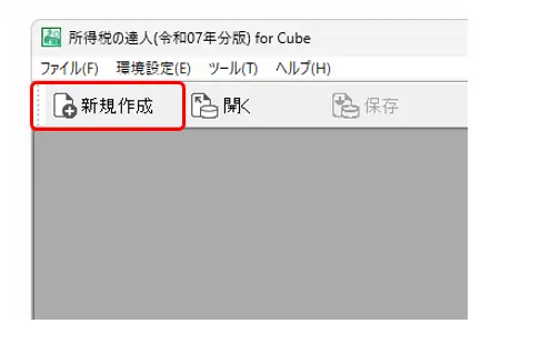 1.所得税の達人を開き、[ファイル]メニューから[新規作成]をクリックします。