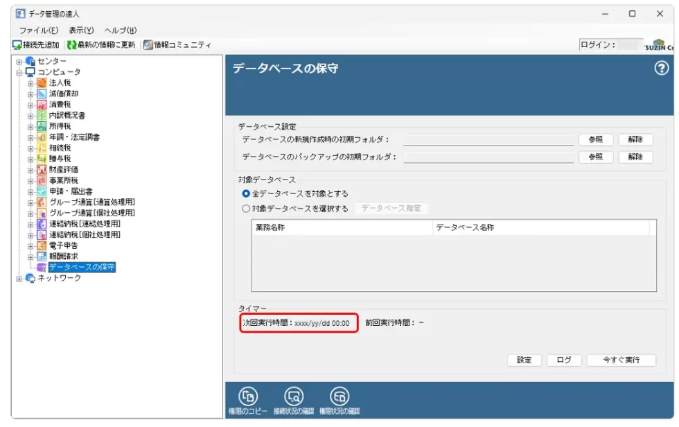 7.[データベースの保守]画面に戻ります。[次回実行時間]に手順4で設定した日時が表示されます。