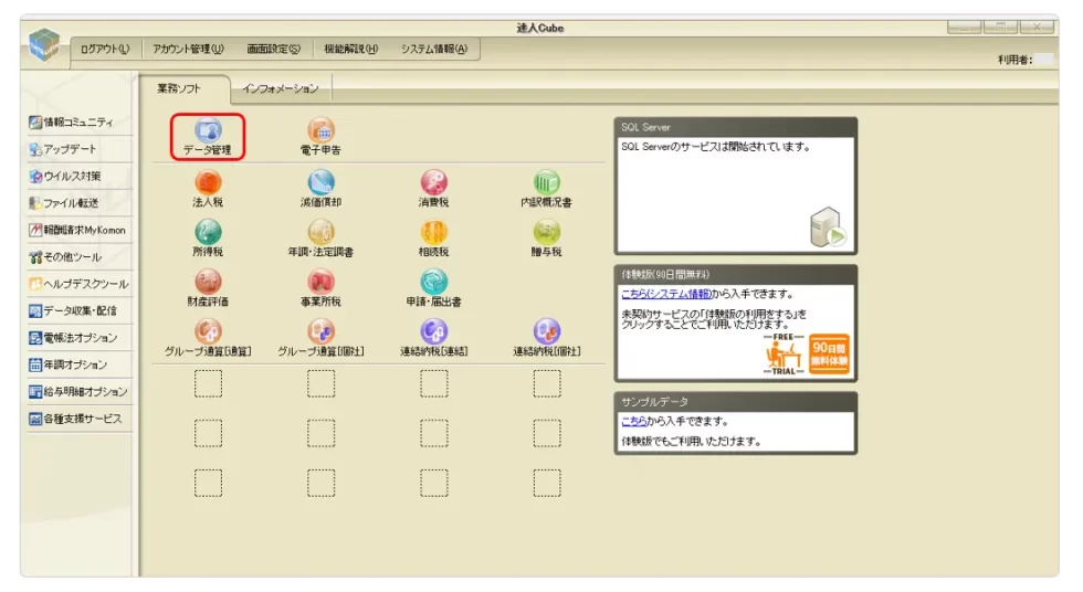 ※達人CubeクラウドAP仮想化サーバーをご利用の方は「管理用デスクトップ接続」画面から行ってください。