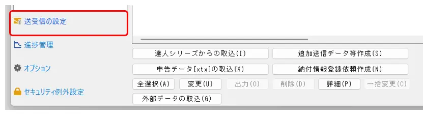17.以上で、設定は完了です。事務所申告用のデータベースへ申告データの[取込]・[検証]・[署名]・[送信]を行います。
