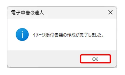 7.[イメージ添付書類の作成が完了しました。]と出ましたら、[OK]をクリックします。
