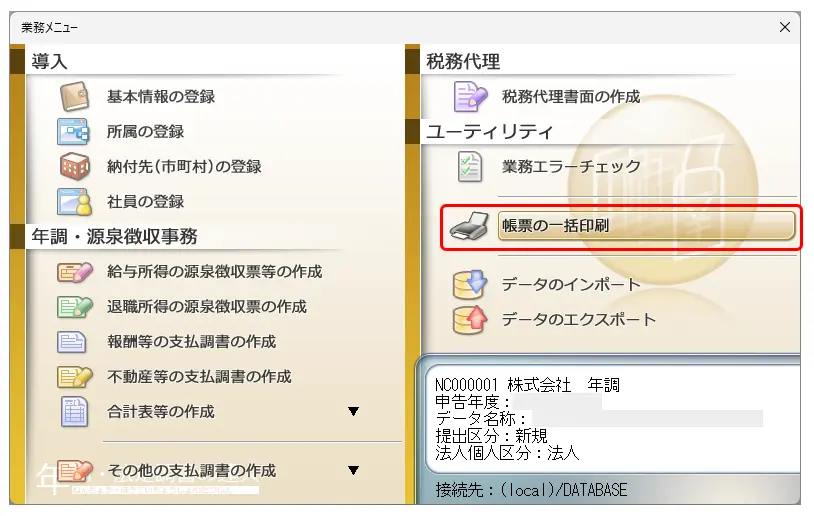 1.業務メニューから[帳票の一括印刷]をクリックします。