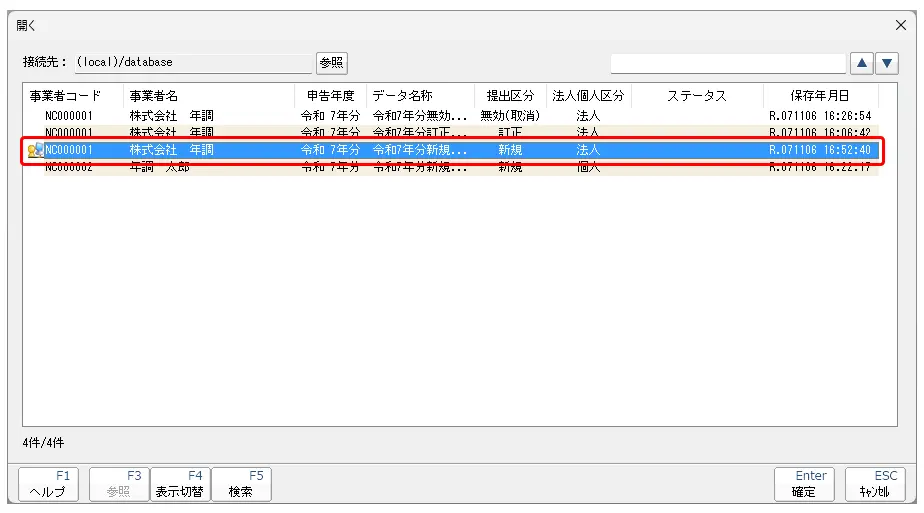 データベースを作成しているPC(親機/サーバー)で、年調・法定調書の達人を開きます。