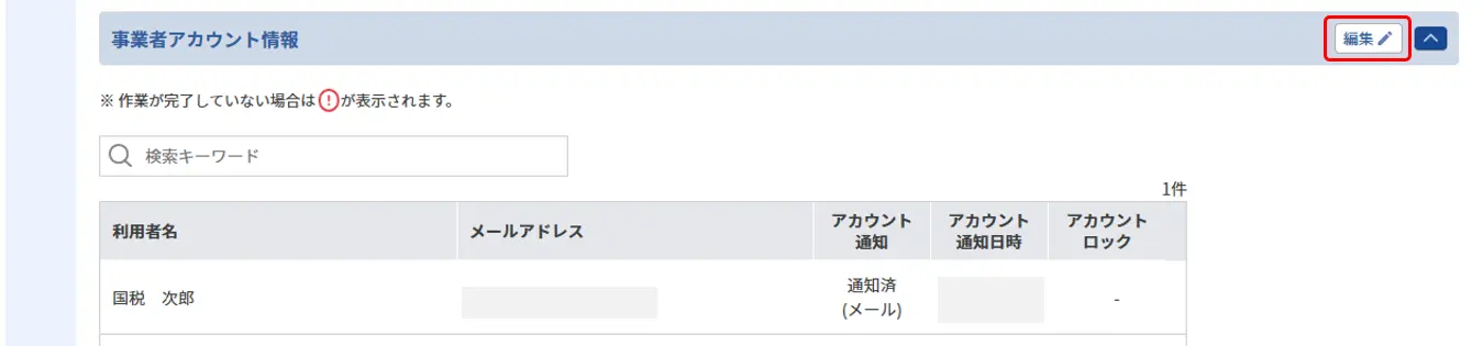 3.事業者アカウント情報項目で「編集」をクリックします。