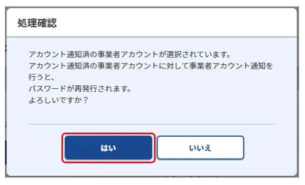 5.処理確認画面を確認し、「はい」をクリックします。