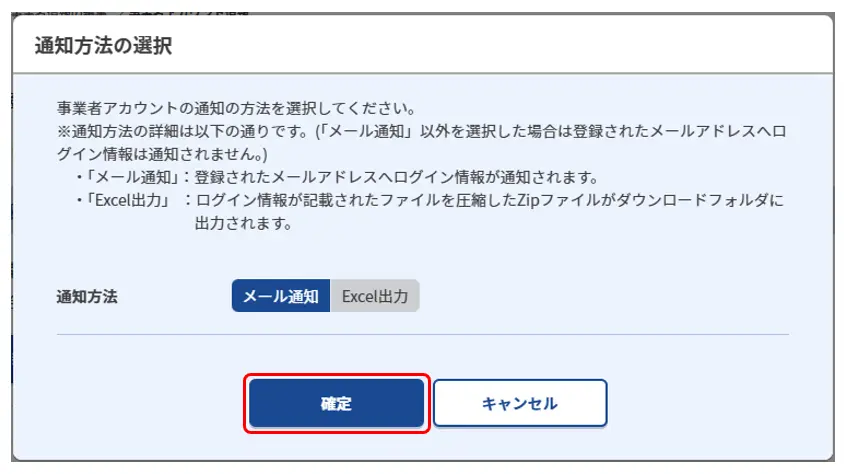 6.通知方法の選択を行い、「確定」をクリックします。