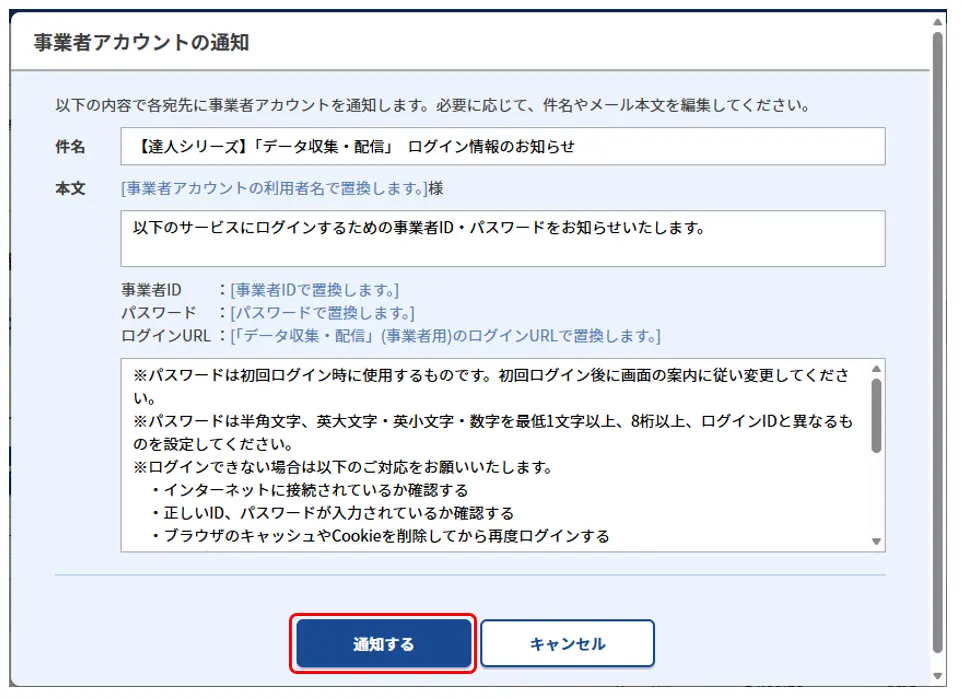 7.「通知する」をクリックします。