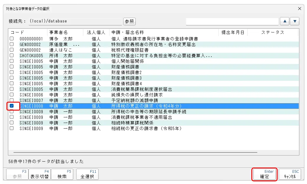 3.対象となる事業者データのチェックボックスにチェックを入れ、[確定]をクリックします。