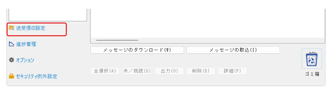 1.電子申告の達人-[送受信の設定]をクリックします。